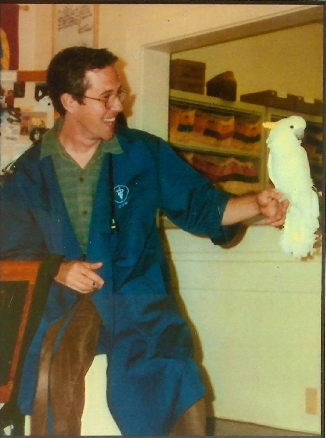 For over 30 years, Rob has touched the lives of hundreds of thousands of clients and their pets with an unwavering dedication to compassionate empathy. His impact extends beyond that of the modern veterinarian; he coaches his clients through the confusion of medicine by maintaining constant communication via his personal texting number. Dr. Rob has become a community icon, with many remembering his beloved cockatoo, Thelma, perched on his shoulder as they attended weekly Farmers Markets and “Dr. Shadow” classes together.